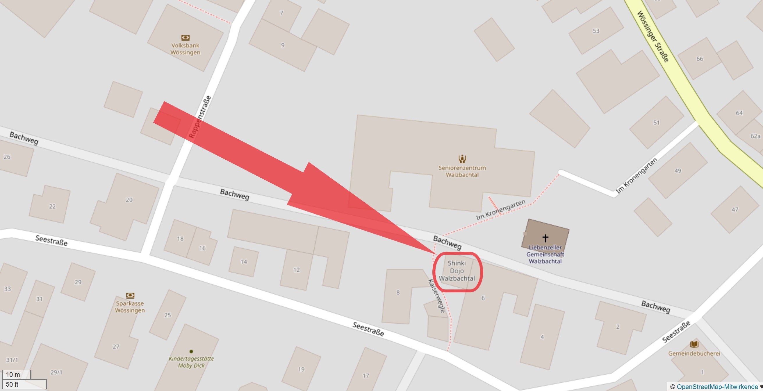 Das Training findet in Walzbachtal 75045 (Wössingen) in der Seestraße 6 statt. Zugang über den Bachweg.